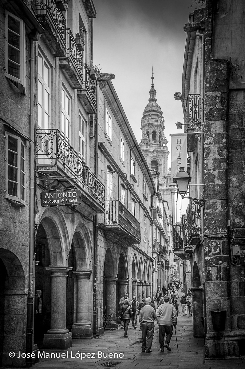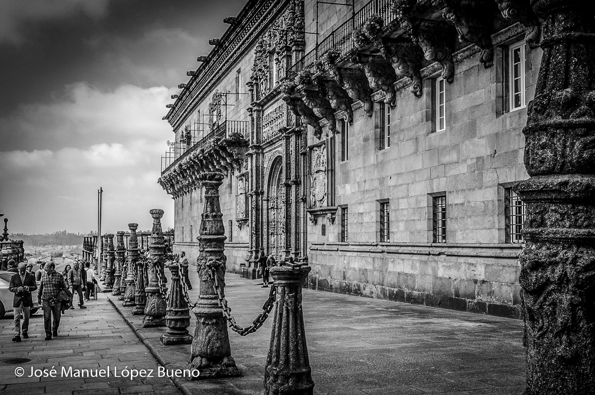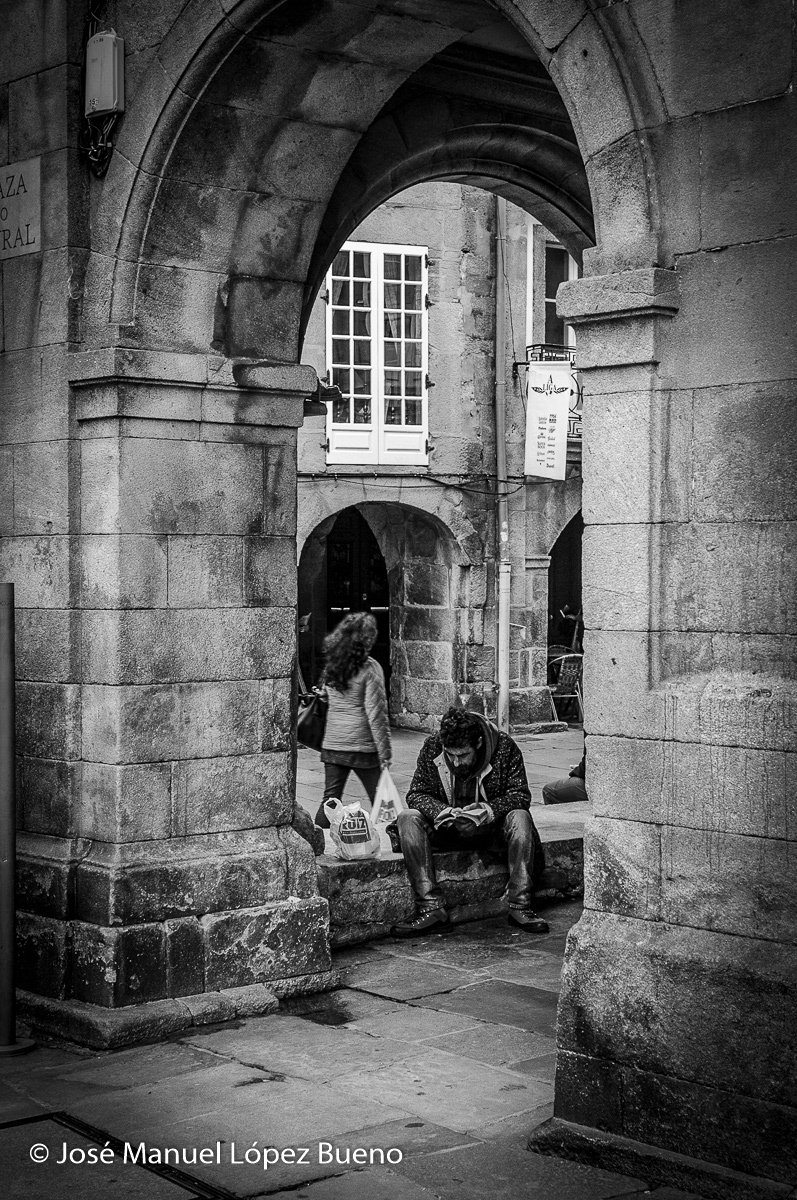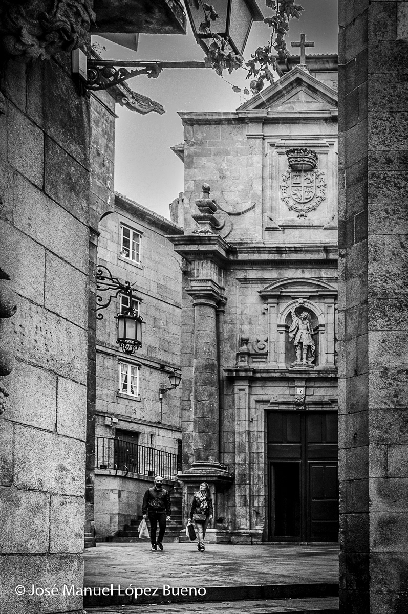 This black-and-white series explores Santiago de Compostela through the stillness of grey, rainy days. The cobblestone streets, worn by centuries of footsteps, become a space of passage and contemplation, where the presence of pilgrims coexists with silence, dampness, and stone. Black and white enhances the city’s mystical character, reducing the scene to light, texture, and gesture, allowing the atmosphere to speak for itself.