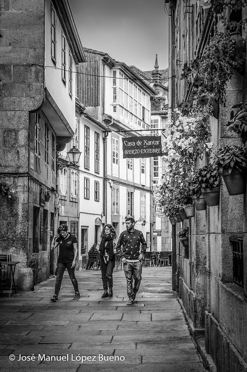 Esta serie en blanco y negro recorre Santiago de Compostela desde la quietud de los días grises y lluviosos. Las calles empedradas, gastadas por siglos de pasos, se convierten en un espacio de tránsito y recogimiento, donde la presencia de los peregrinos convive con el silencio, la humedad y la piedra. El blanco y negro acentúa el carácter místico de la ciudad, reduciendo la escena a luz, textura y gesto, y dejando que la atmósfera hable por sí misma.