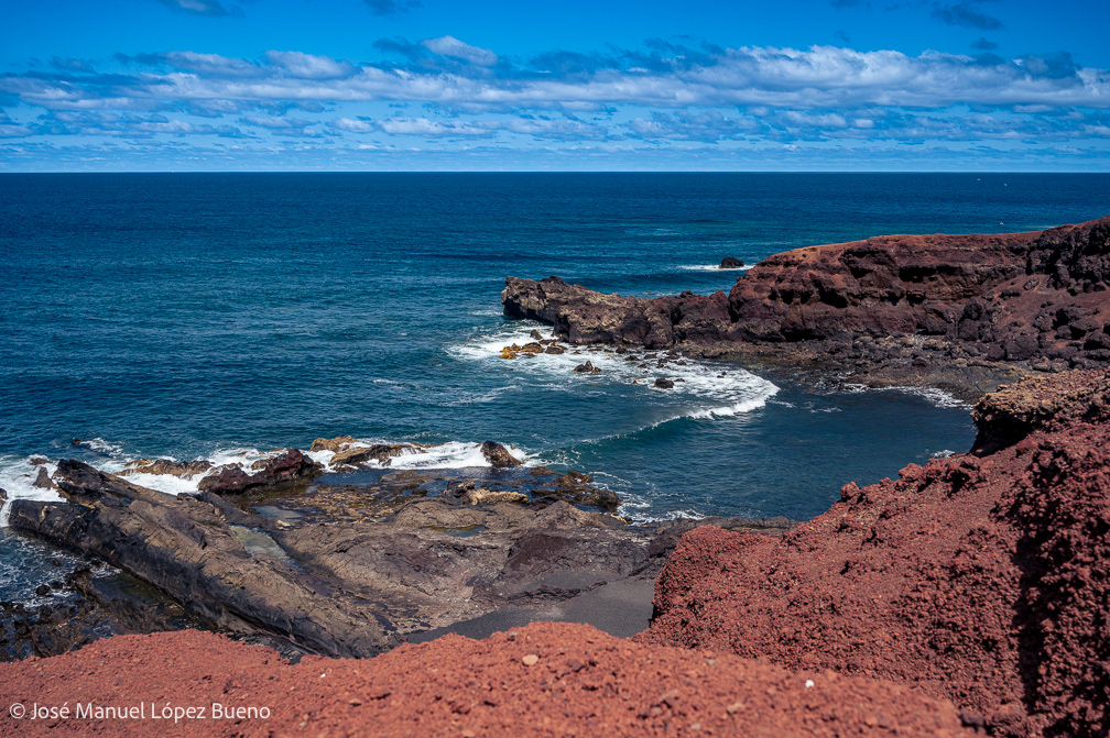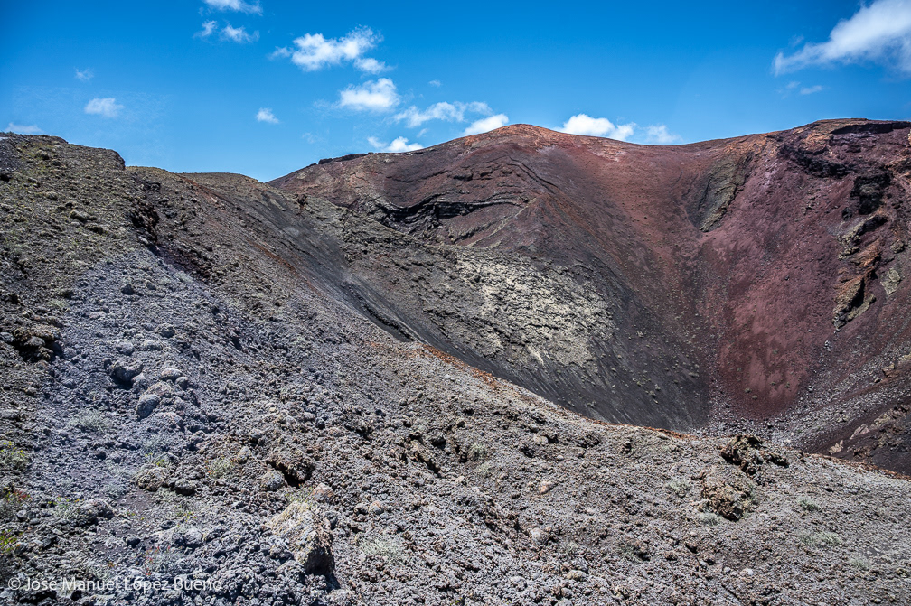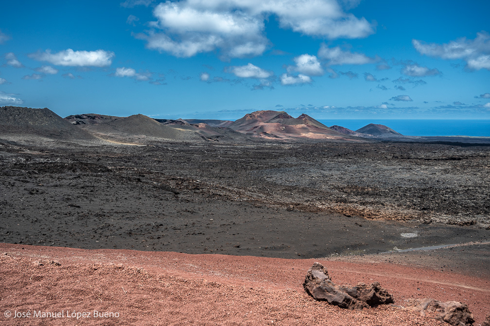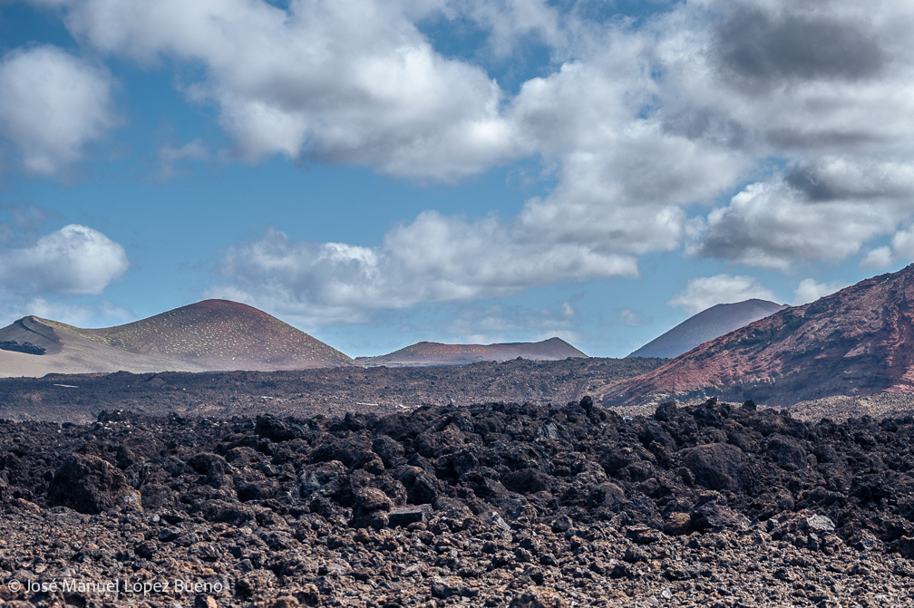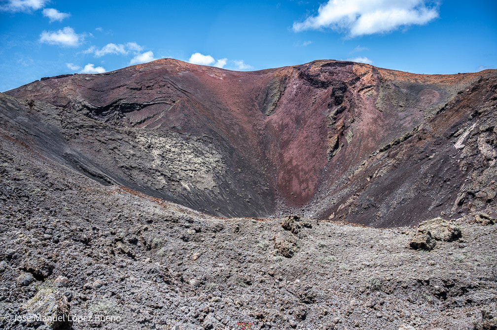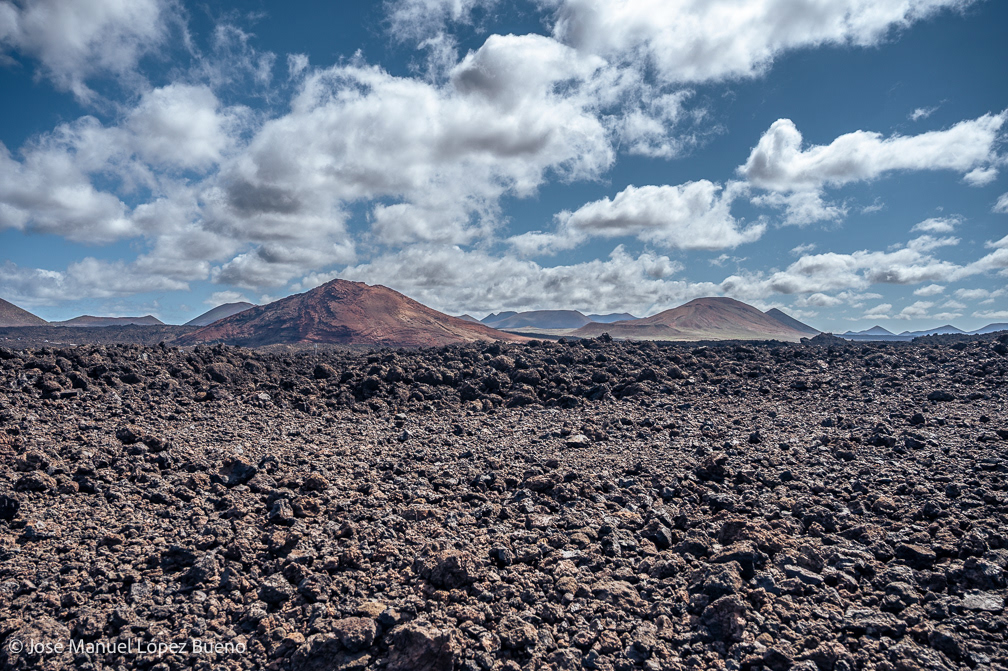 En Lanzarote, la lava detenida dibuja un territorio áspero, casi mineral, donde el tiempo geológico permanece visible. Cráteres, rocas fragmentadas, suelos negros que aún conservan la memoria del fuego.