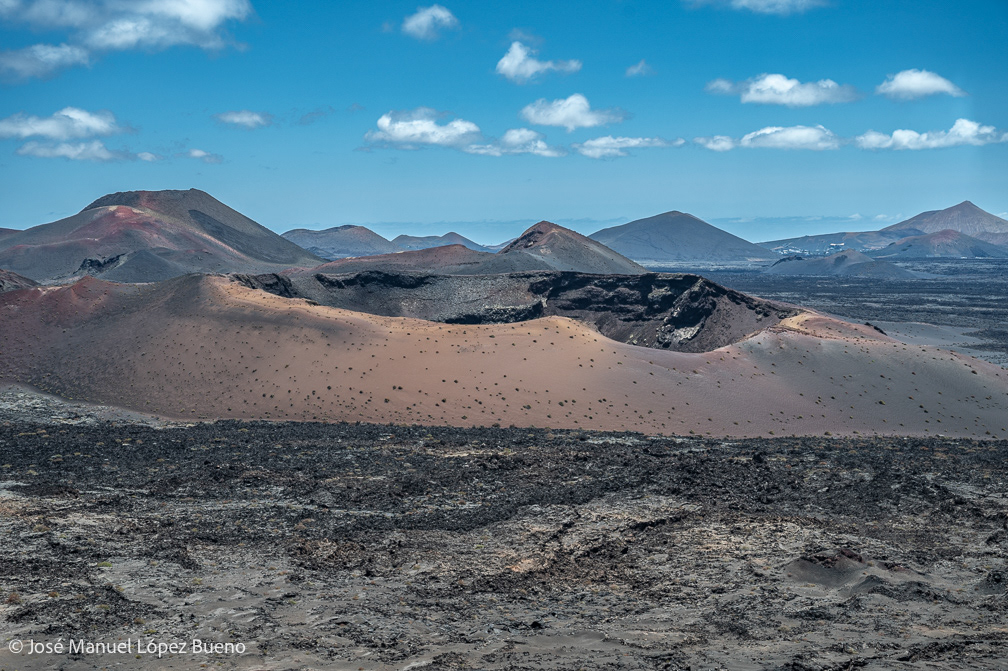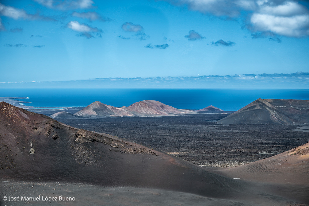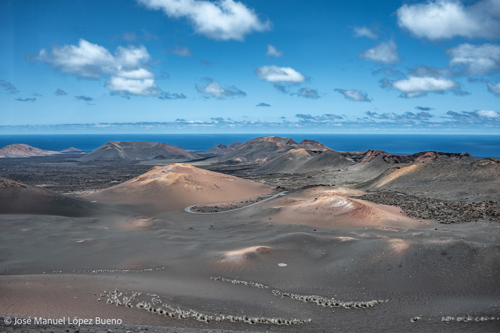 In Lanzarote, solidified lava shapes a harsh, almost mineral territory where geological time remains visible. Craters, fractured rocks and black soils still carrying the memory of fire.
